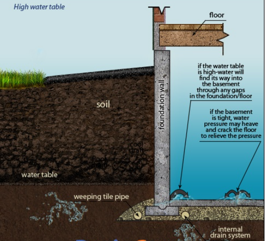 Document the pattern and timing of leaks. If water intrusion correlates with high groundwater or long rainfall events rather than isolated plumbing leaks, prioritize professional assessment for a new weeping tile system.